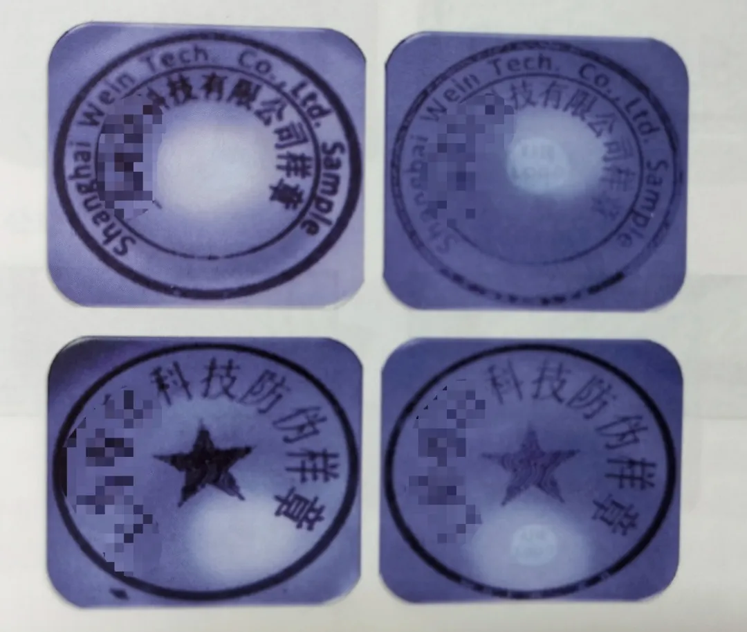 比较成熟的印油防伪技术包括:热敏印油防伪、紫外荧光印油防伪和红外印油防伪。可见印油防伪是印章印文各部分印迹均在自然条件下可见,表现出相同或者不同的印迹特征,而在特定光源下却反映出各自的荧光特效。