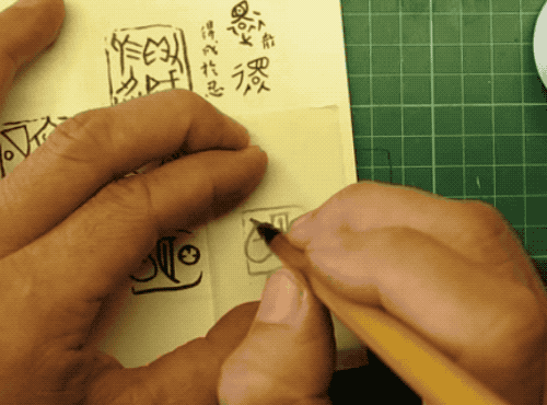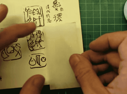 当然大佬们可不是这样的……他们是在拷贝纸上写好了印稿,翻过来成了反字以后,直接在印石上看着描了……