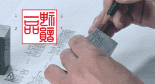 现在要开始具体的制作一枚印章了~首先要把印文写到印面上。由于印章印出来的是一个镜像面,所以印文都是反的字。一般人很难直接在印石上反写,比较常见的一个方法是「水印上石」用来把印稿反向转印上去。