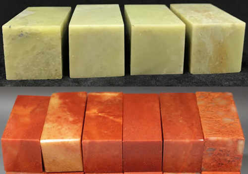 对新手来说,几年前最常买到的就是「青田石」了(下图青色)。