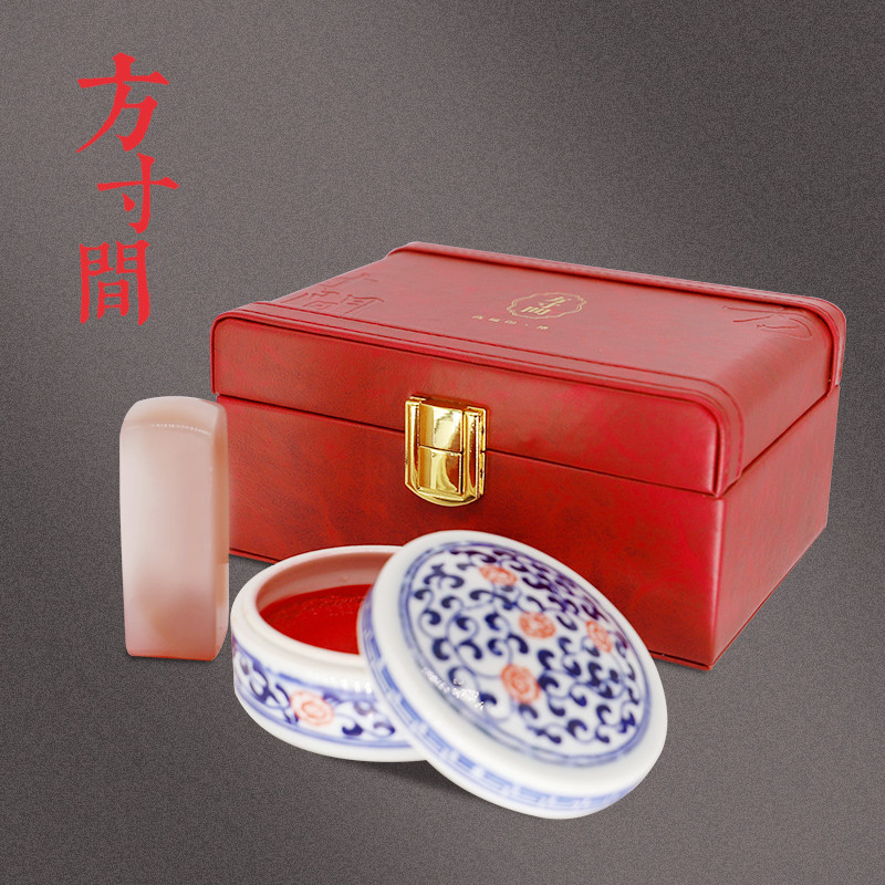 天然玛瑙印章加上朱砂印泥,搭配皮质礼盒