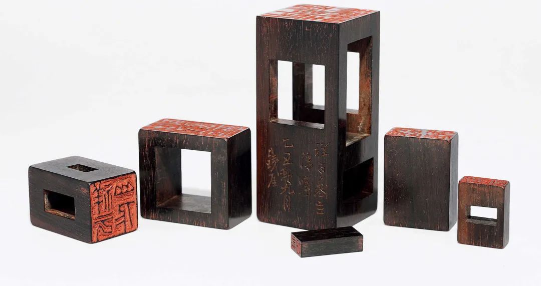 后世也有多面嵌套的紫檀木套印,也是私印,比如这套雷铁厓为山本祥云刻紫檀套印: