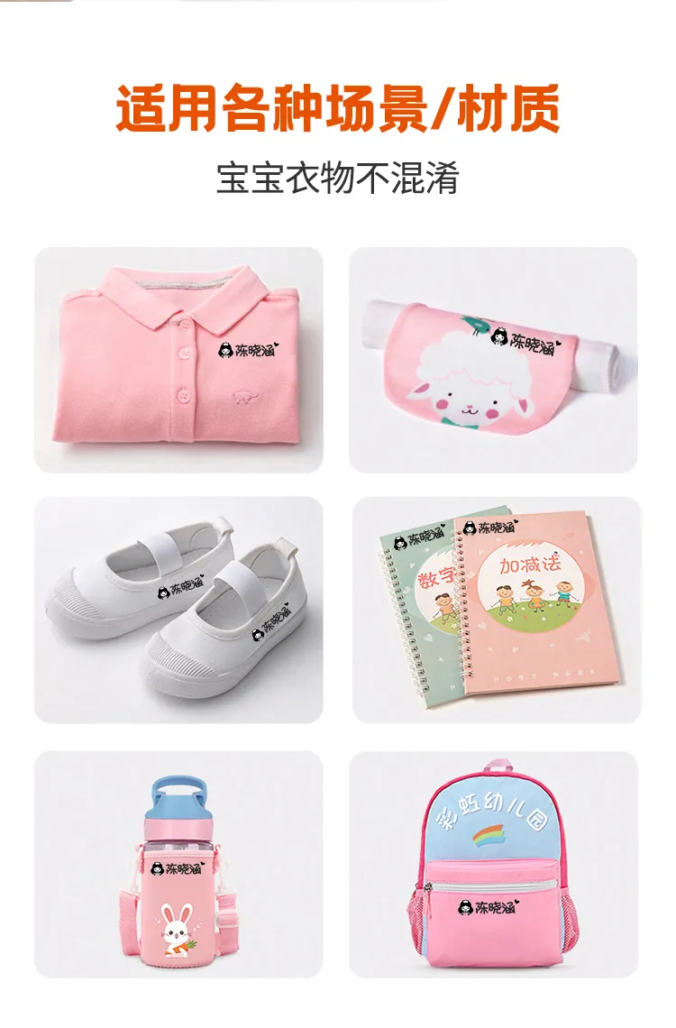 既能帮助孩子辨认自己的物品、名字,也可在孩子和其他小朋友换错物品时,老师和家长能一眼看“穿”~