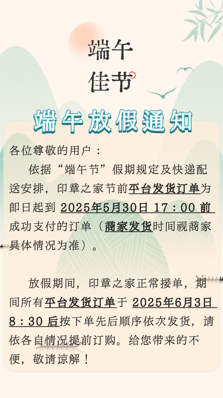 印章之家端午节放假及发货安排通知