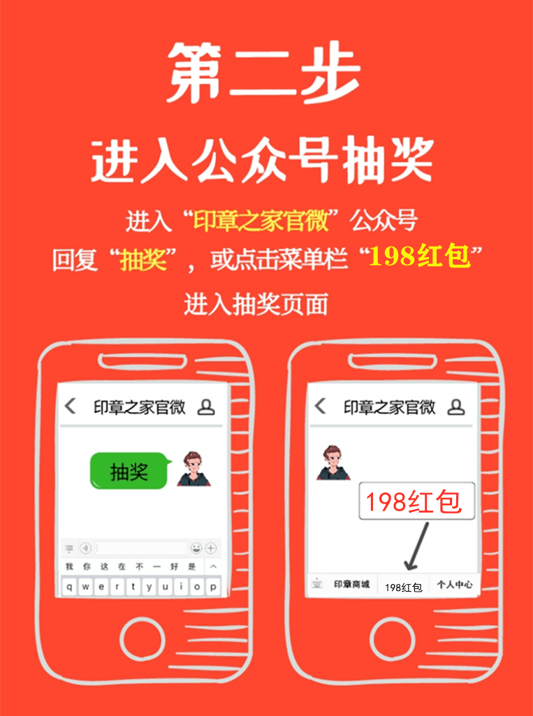 温馨提示:抽中现金红包后,需在24小时内到【印章之家官微】微信公众号领取。逾期未领取,红包将失效,无法补发!